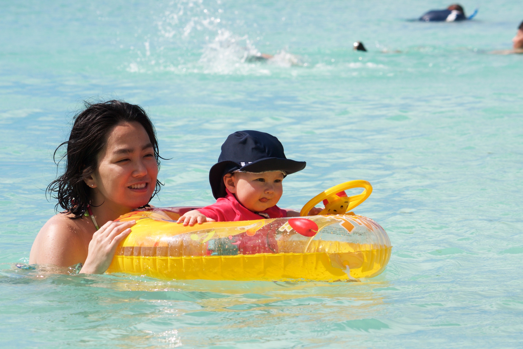 Marie in ihrem Baby-Schwimmgefährt.